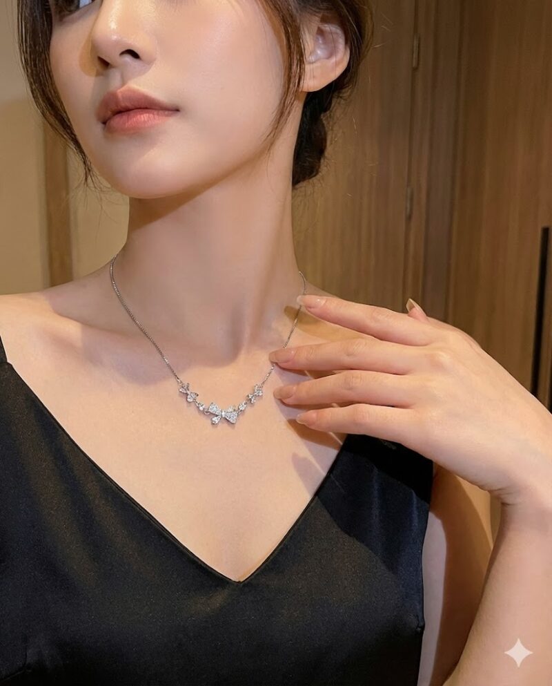 Sweet, feminine, and effortlessly charming — the Crystal Bow Charm Necklace is a celebration of soft sparkle and timeless grace. The dainty bow pendant is lined with glimmering crystals that catch the light with every movement, giving your neckline a subtle yet captivating shimmer.