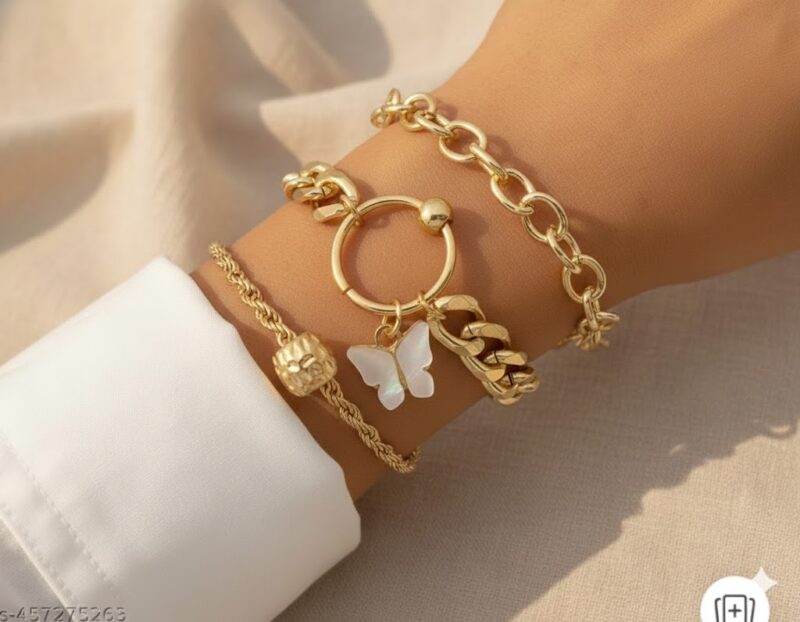 Soft, ethereal, and effortlessly enchanting — the Dreamchain Butterfly Bracelet Set is for those who adore jewelry that feels light like a wish and radiant like golden sunrise. Each bracelet carries its own character — from bold link chains to delicate butterfly charm — coming together to create a dreamy layered statement you’ll love wearing every day.