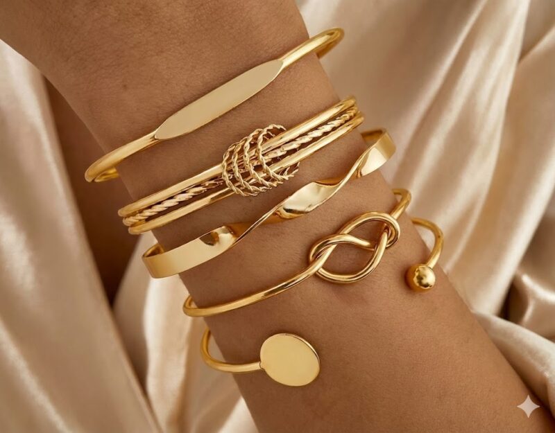 ✨ Golden Harmony Cuff Set – 6-Piece Curated Elegance